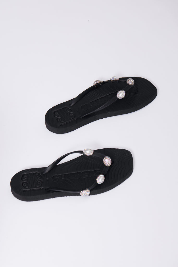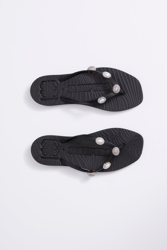 Pearl Ibiza Black is our most embellished style, featuring sculptural pearl details that add a touch of glamour to your flip flops. Perfect for long summer nights and spontaneous adventures.