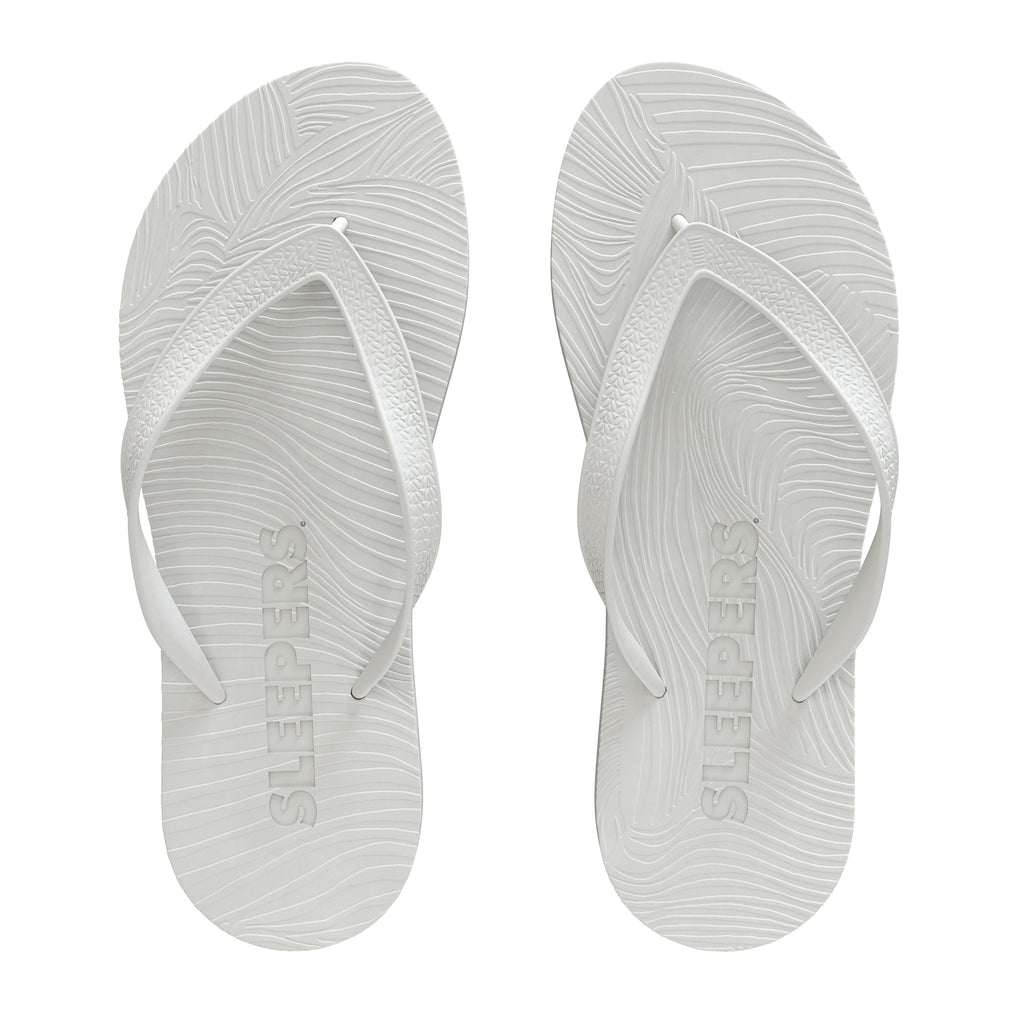 Fresh classic and clean. The wide strap flip flop looks great in this modern white color.
